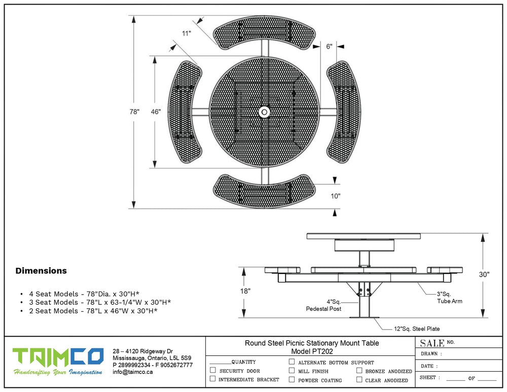 Round Steel Picnic Stationary Mount Table Picnic Table & Seat - Model PT202