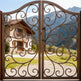 scrollwork man door, ornamental wrought iron gate, arched garden entry, Canadian custom gate, Taimco decorative passage door, manual operation estate gate