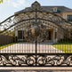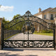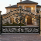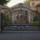 wrought iron gate with crest, floral scroll driveway gate, luxury estate entrance, Canadian custom gate, Taimco ornamental gate, architectural privacy gate