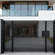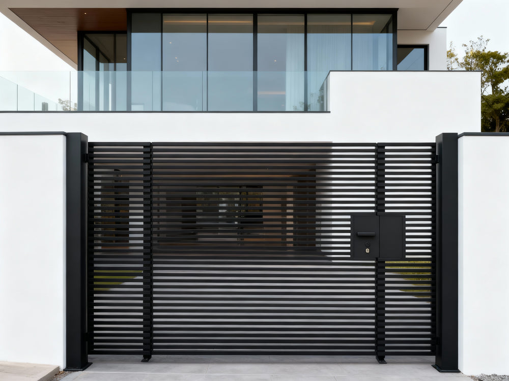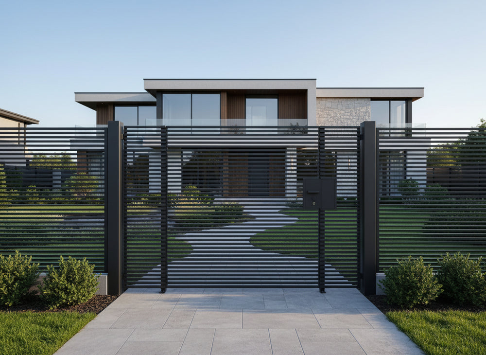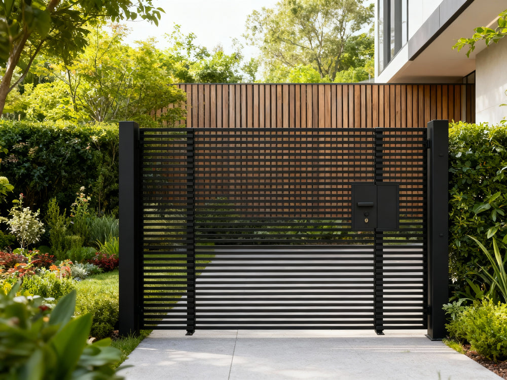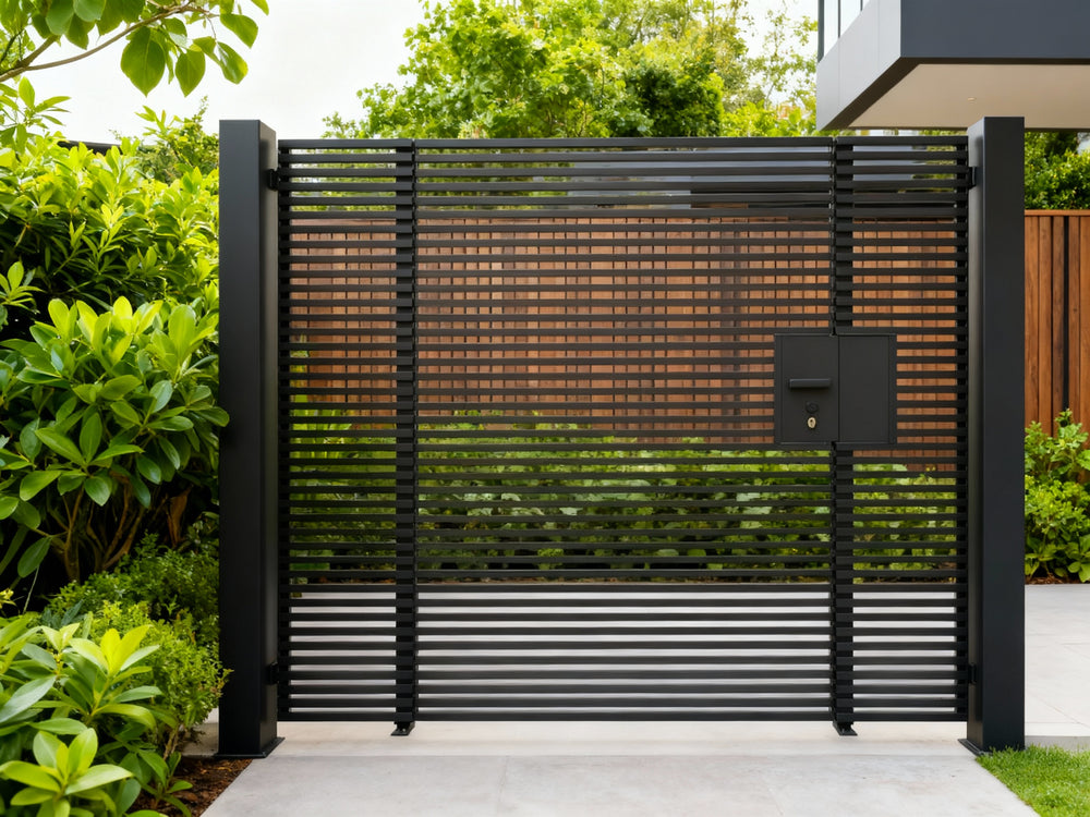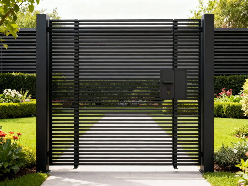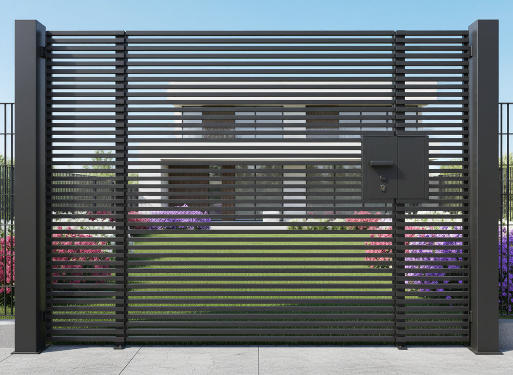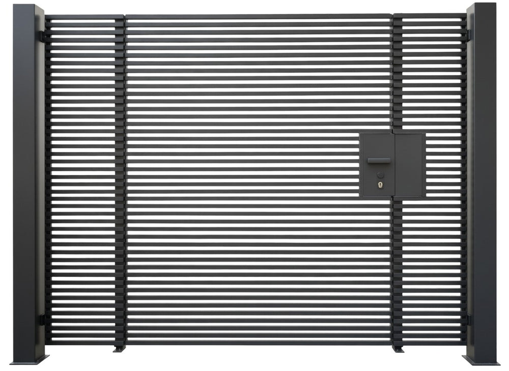 Design: Horizontal slats with integrated mailbox and secure lock system