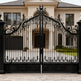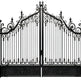 Spear crest Bastion – Ornate Wrought Iron Gate with Finials, Scrollwork & Crest Emblem Model # DWG199