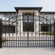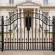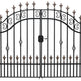 Design: Vertical bar lattice with alternating spear tips, diamond centerpiece, and arched scroll crown