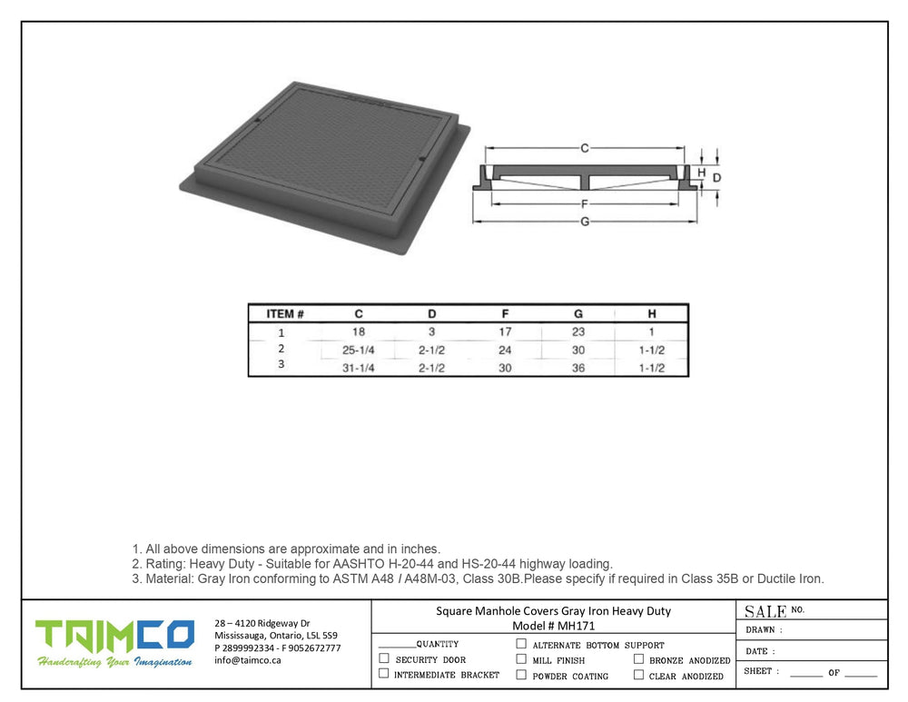 Square Manhole Cover and Frame Gray Iron Model # MH171