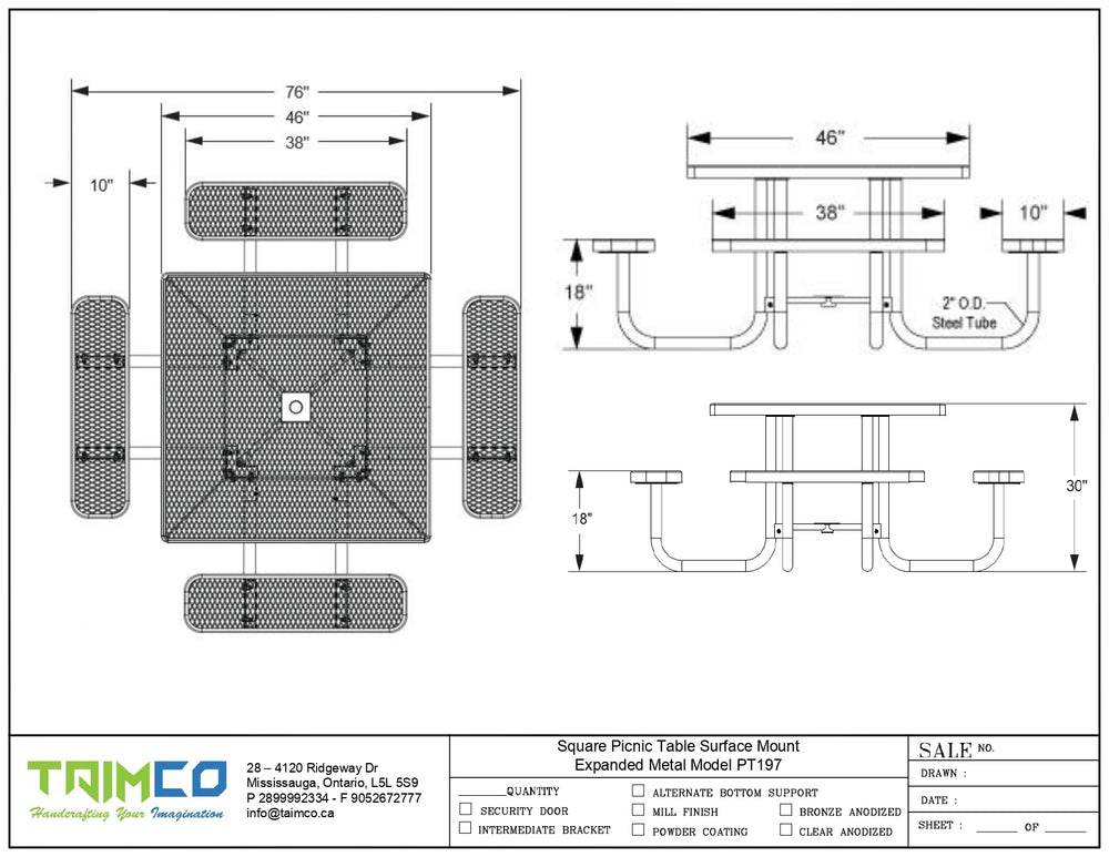 Square Picnic Table Surface Mount Expanded Metal | Picnic Table & Seat | Model PT197