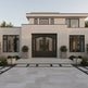 Upgrade your home’s entrance with Model IWD933, a square-top wrought iron double door featuring vertical scroll panels and a transom window. Built in Canada using galvanized steel and powder-coated matte black, this decorative entry system is ideal for homeowners seeking custom iron doors, double entry doors with transoms, vertical scroll black steel doors, and energy-efficient metal door solutions with classic symmetry