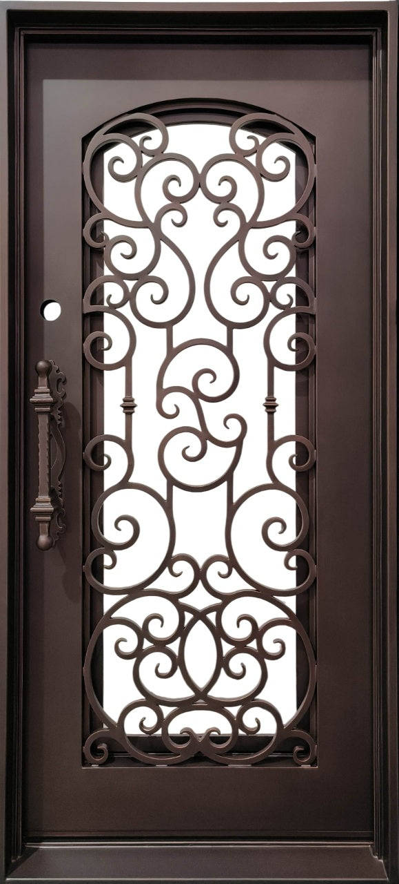 - Decorative Scroll-Work: Standard iron entry doors come with decorative 5/8" square solid steel scrollwork.