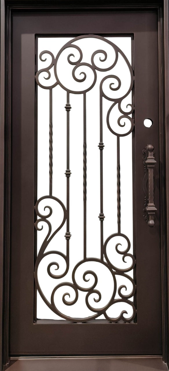 - Decorative Scroll-Work: Standard iron entry doors come with decorative 5/8" square solid steel scrollwork.