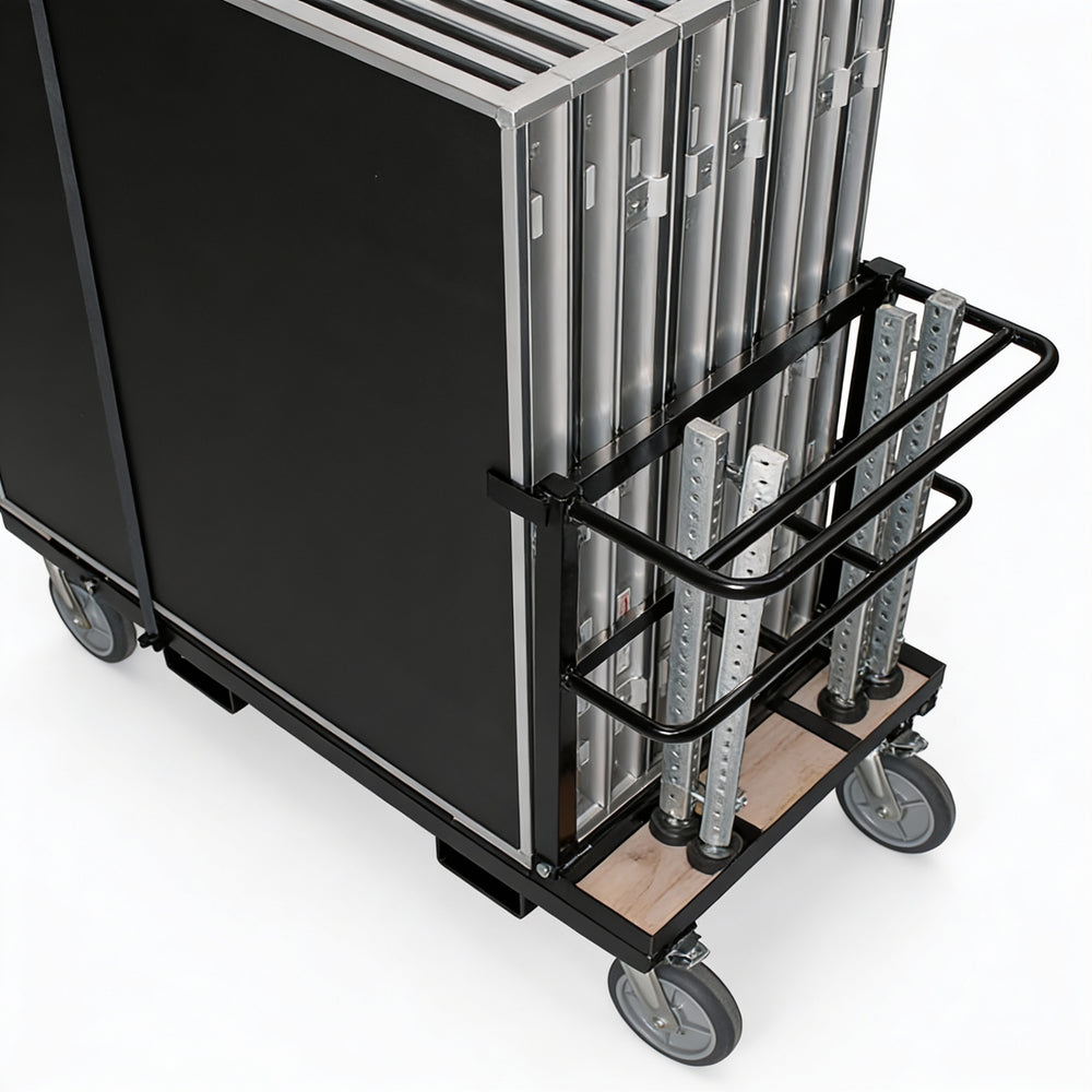 - Adjustable for Storing 4' or 8' Stage Decks.