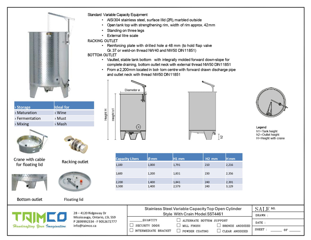 The TAIMCO SST4461 Variable Capacity Tank is designed to provide exceptional storage solutions with unmatched precision and versatility. Unlike other tanks, our variable capacity tanks are truly round and leak-proof, thanks to their strengthening rim and perfect finishing. This unique quality ensures that our tanks are always reliable and efficient.