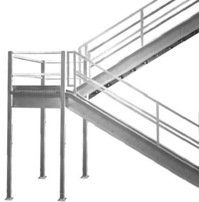 Heavy Duty Stair Landings with a 180 Degree Switch Back Turn Design are engineered for industrial and commercial environments where space optimization and safety are paramount. These landings provide a robust and reliable solution for navigating vertical spaces, featuring a switchback design that allows for a 180-degree turn, making them ideal for areas with limited floor space.