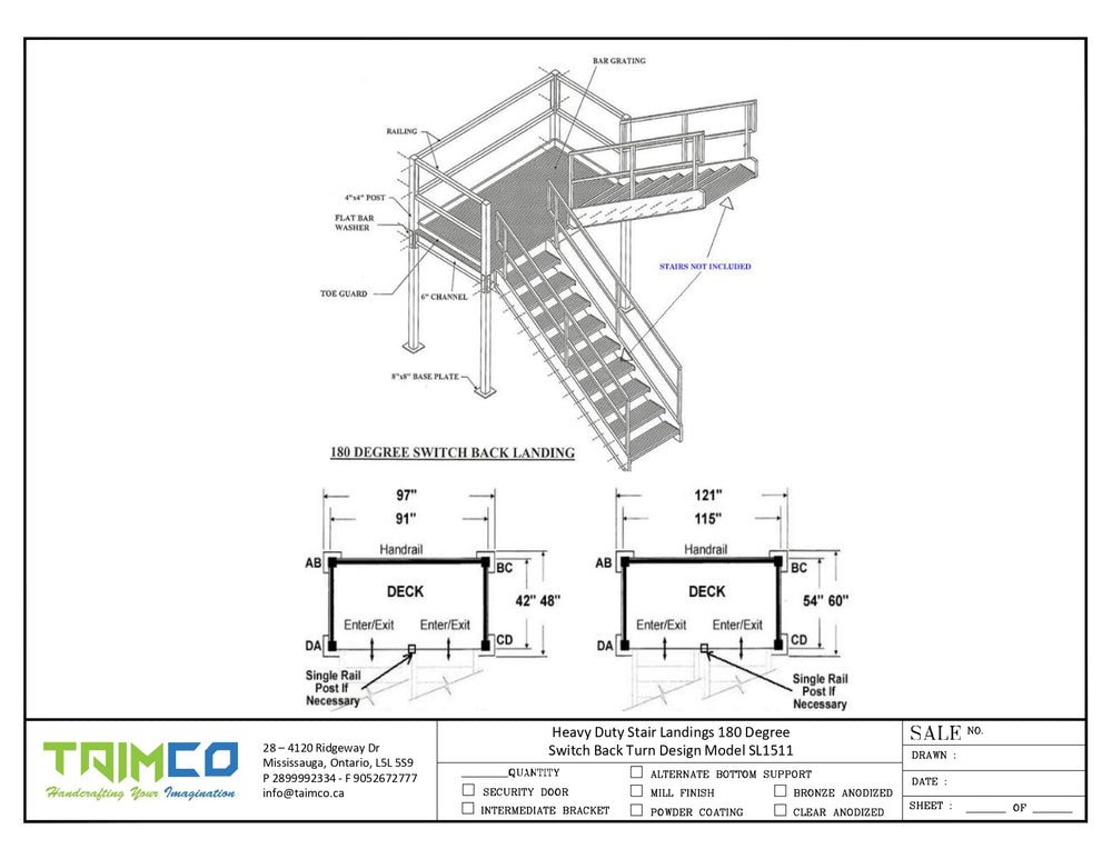 Stair Landings 180 Degree Switch Back Turn Design Model SL1511