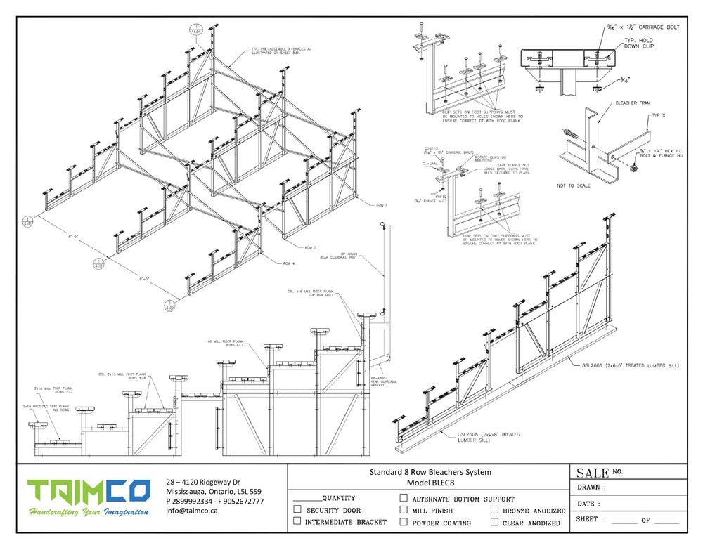 - Bleacher Units: We manufacture bleachers with varying row units, including 2, 3, 4*, 5*, 8*, and 10* rows.