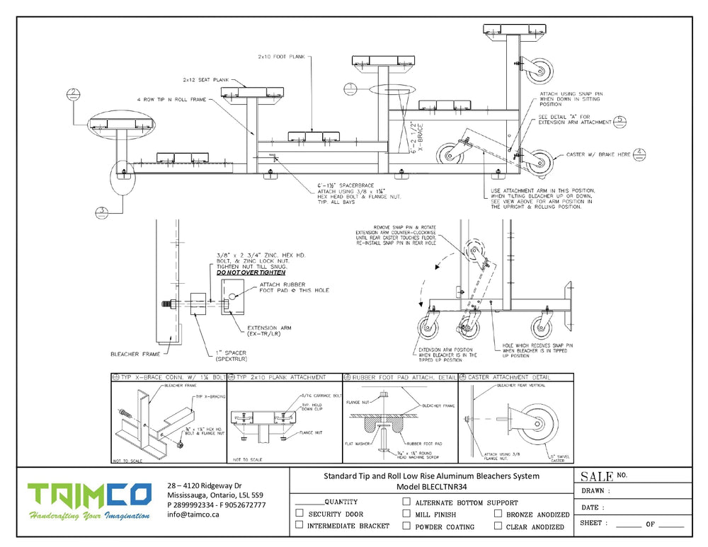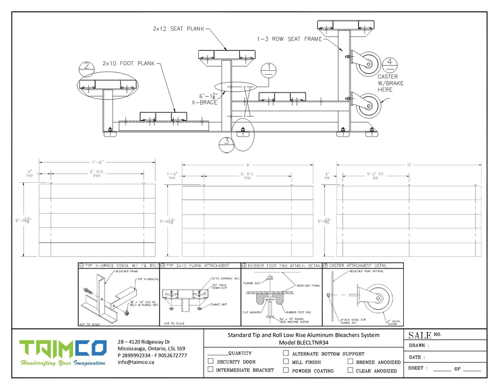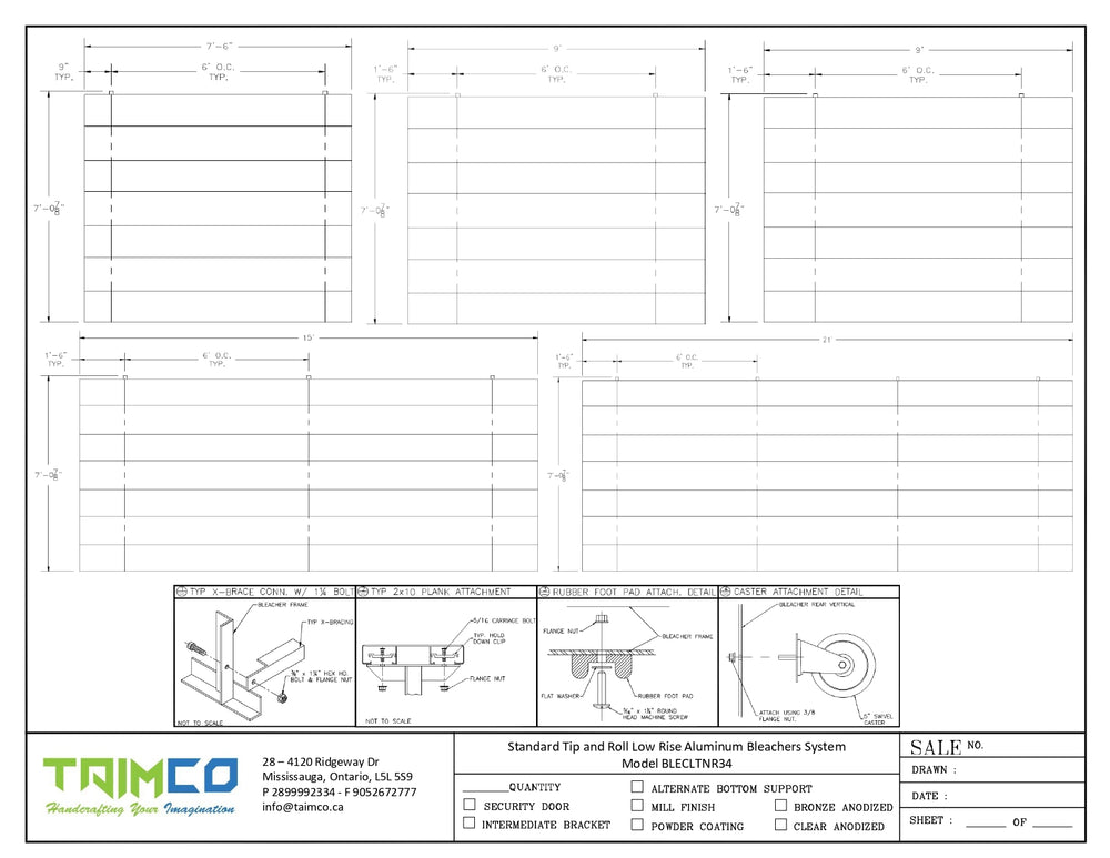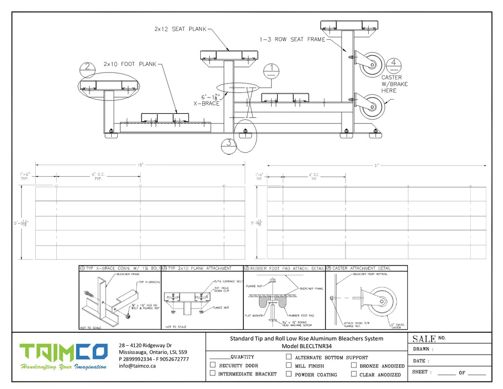 Standard Tip and Roll Low Rise Aluminum Bleachers System - Model BLECLTNR34