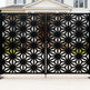 Design: Starburst motifs with trapezoidal and triangular cut-outs