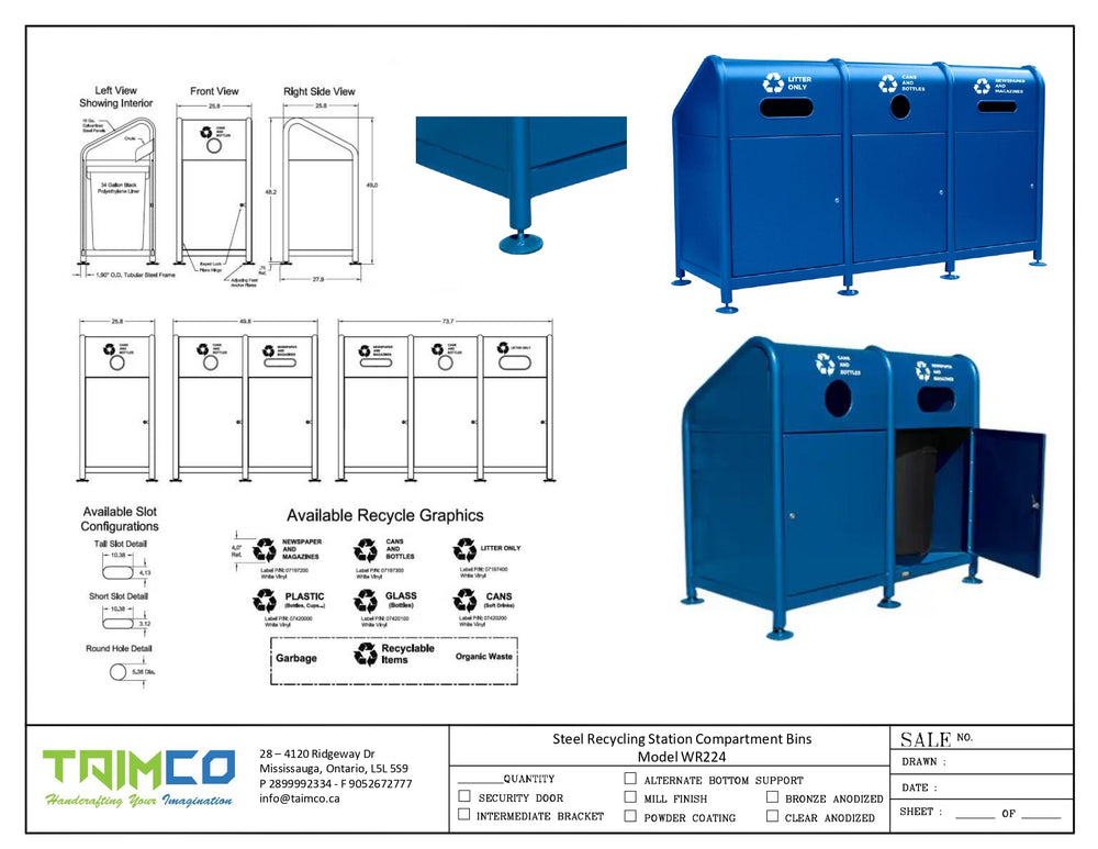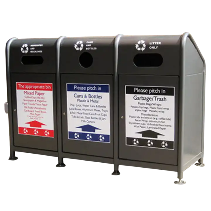Steel Recycling Station | Three or Two Compartment Bins | Model WR224