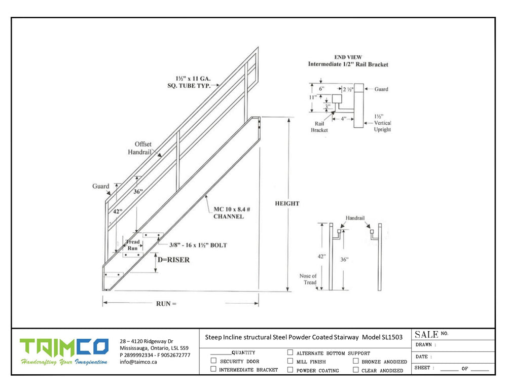 Steep Incline structural Steel Powder Coated Stairway Model SL1503