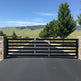 Strata Line Modern – Staggered Horizontal Slat Steel Driveway Gate Model # DWG172