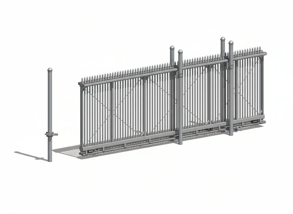 - Metal: Gate panels are made of aluminum alloy extrusions, ensuring strength, durability, and lightweight construction.