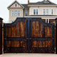 wood metal driveway gate, riveted estate entrance, scroll base custom gate, Canadian handcrafted gate, Taimco Stud forge model, automated or manual operation