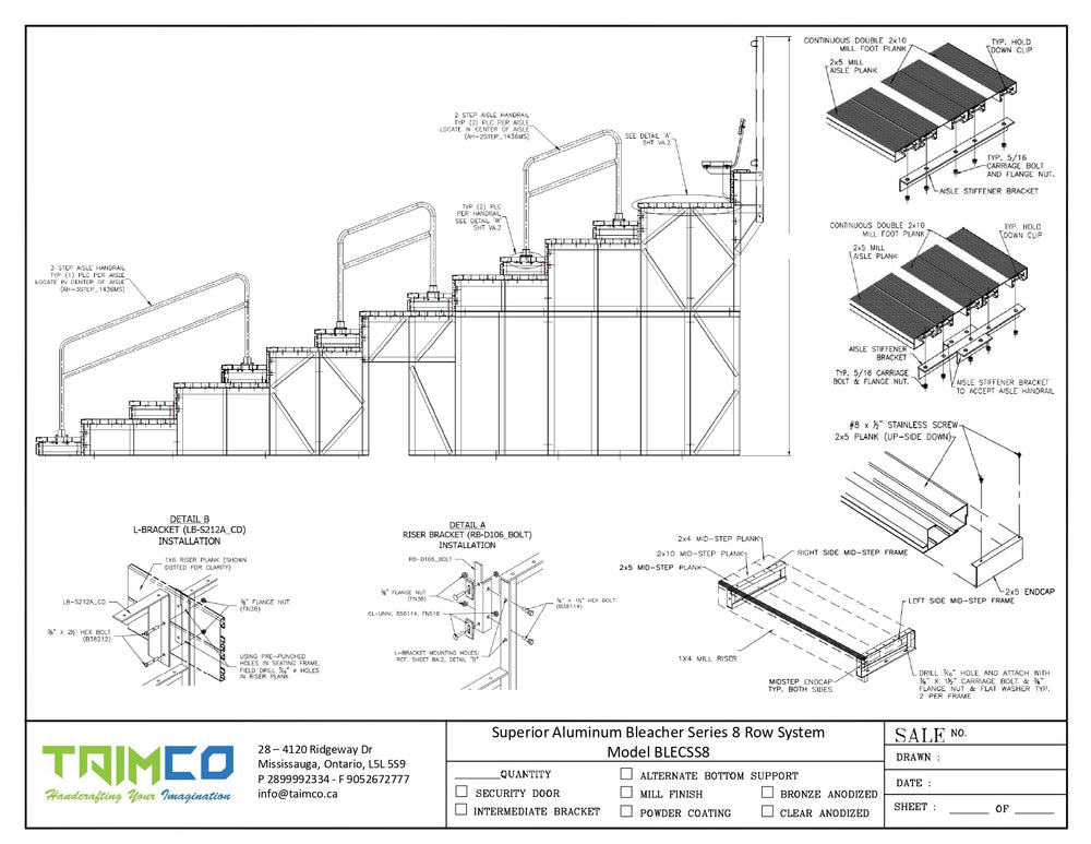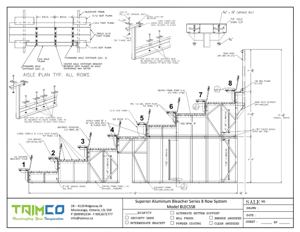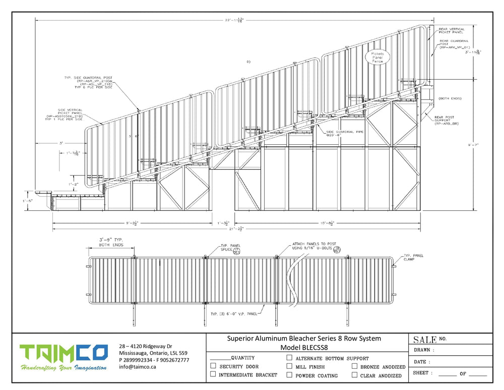 Superior Aluminum Bleacher Series 8 Row System - Model BLECSS8