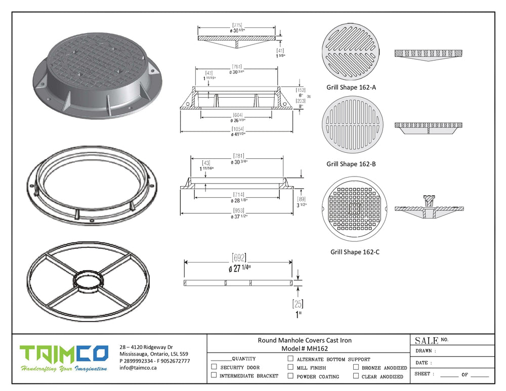 The Round Manhole Cover and Frame Gray Iron Model # MH162 is designed to provide robust and reliable access solutions for various outdoor applications. Made from high-quality ductile iron casting, this manhole cover ensures durability and long-lasting performance. Its unique design style adds an aesthetic touch to any environment, making it suitable for functional and decorative purposes.