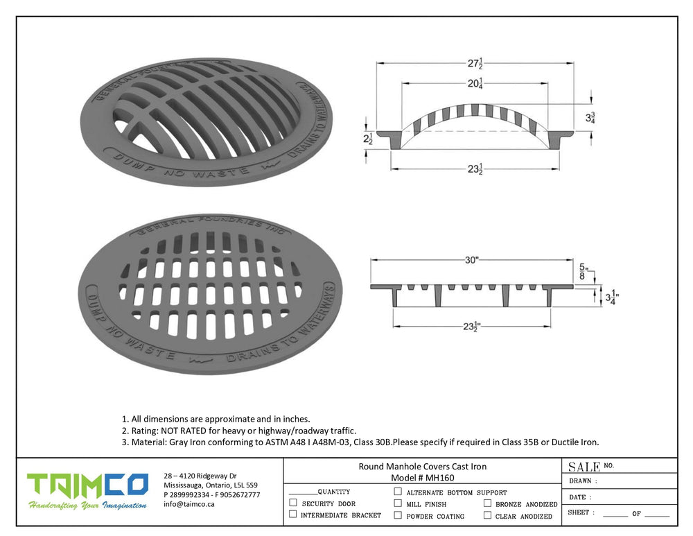 Round Manhole Covers Cast Iron Light Duty Model # MH160