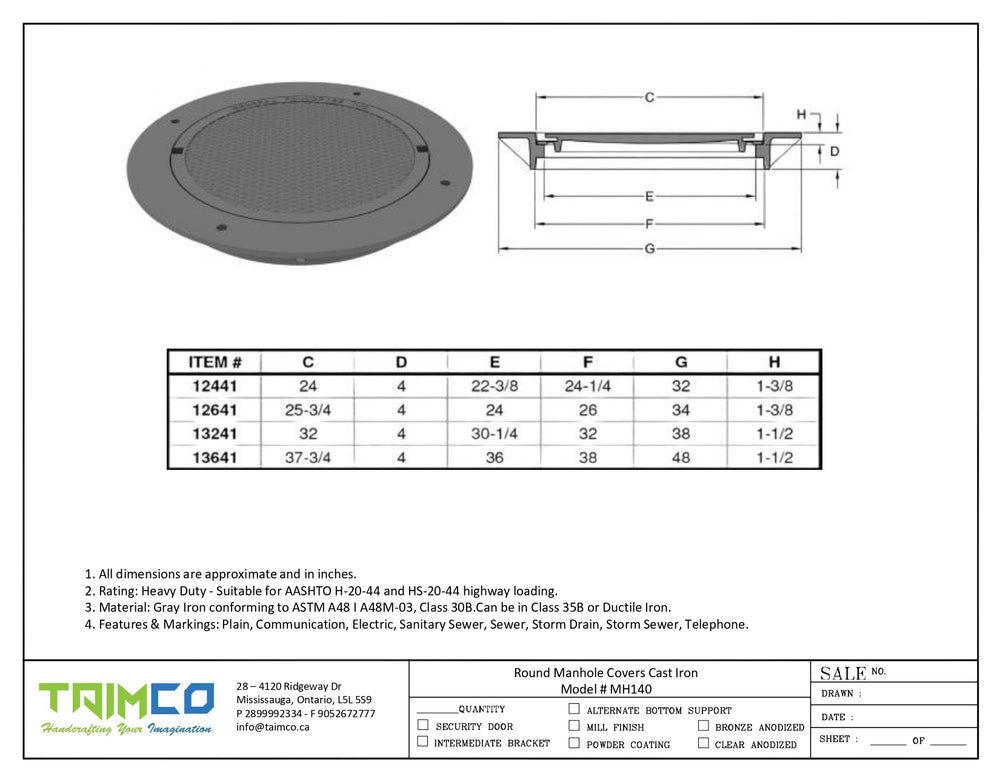 Round Manhole Covers Heavy Duty Gray Iron Model # MH140
