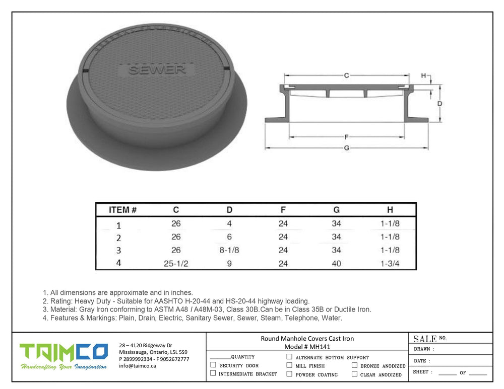 Round Manhole Covers Heavy Duty Gray Iron Model # MH141