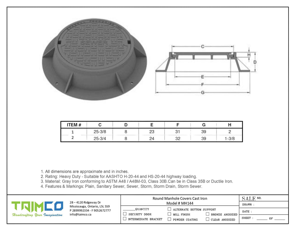 TAIMCO Round Cast Iron Manhole Cover, Ductile Iron Manhole Cover, Watertight Manhole Cover, Heavy-Duty Manhole Cover, Outdoor Manhole Cover, Customizable Manhole Cover, Durable Manhole Cover, High-Quality Manhole Cover, Manhole Cover for Car Parks