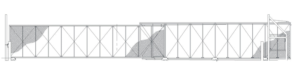The TAIMCO Telescoping Box Frame Roller Gate is a ground track roller gate that includes an internal extension gate, allowing smaller gates to close larger openings. For example, a 60 ft opening could be closed by a gate that has an overall length of less than 37 ft (prior cantilever designs would have required 90 ft)!