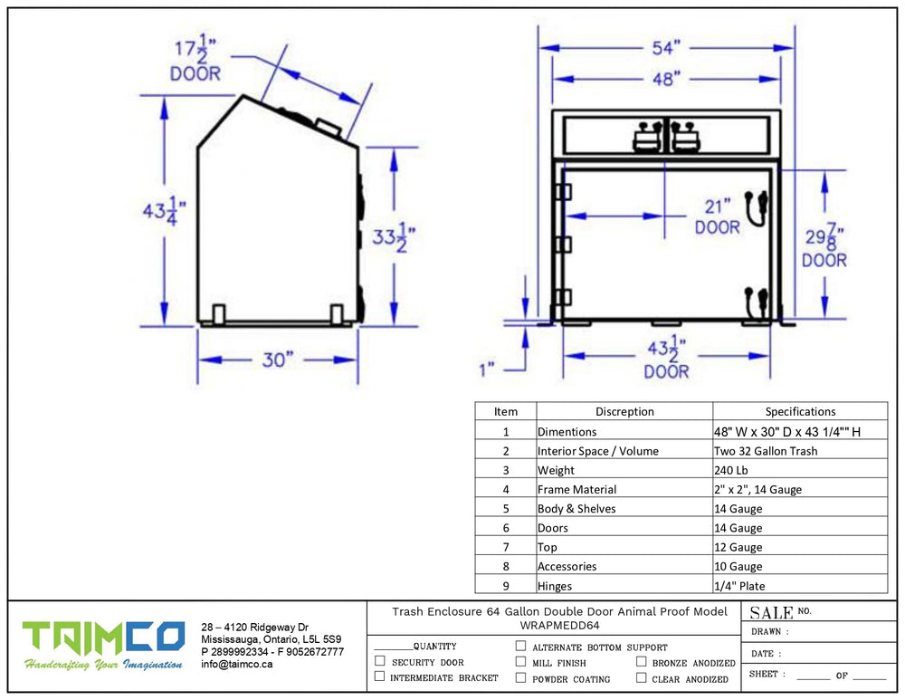 Trash Enclosure 64 Gallon Animal Proof Model WRAPMEDD64