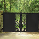 Make a bold entrance with TreeLine Fusion, a driveway gate that blends sleek horizontal lines with a striking tree silhouette. This plasma-cut steel gate is designed for homeowners who value both security and style. The central tree motif adds a natural, grounding presence, while the solid side panels offer privacy and strength.