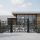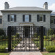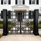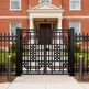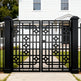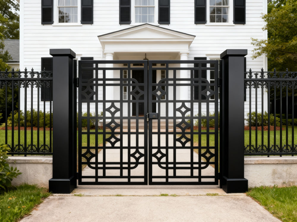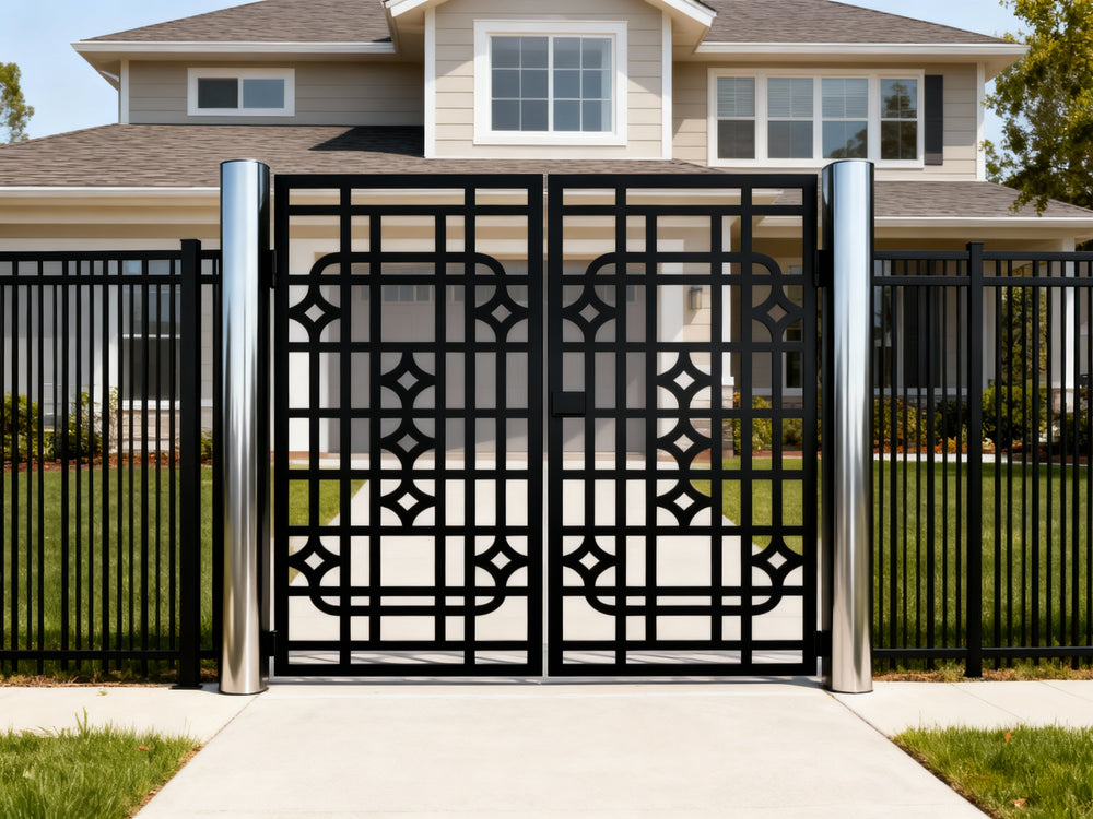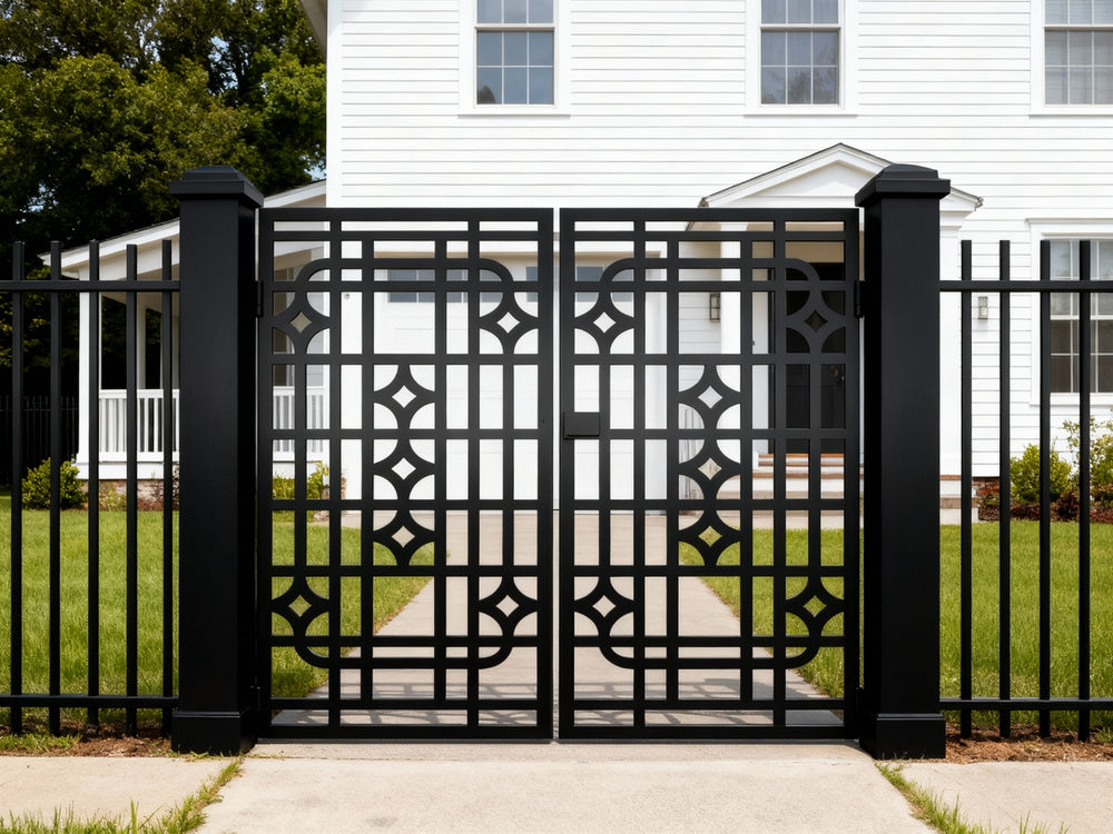 diamond grid man door, curved accent metal gate, geometric symmetrical garden entry, Canadian custom gate, Taimco architectural passage door, manual operation estate gate