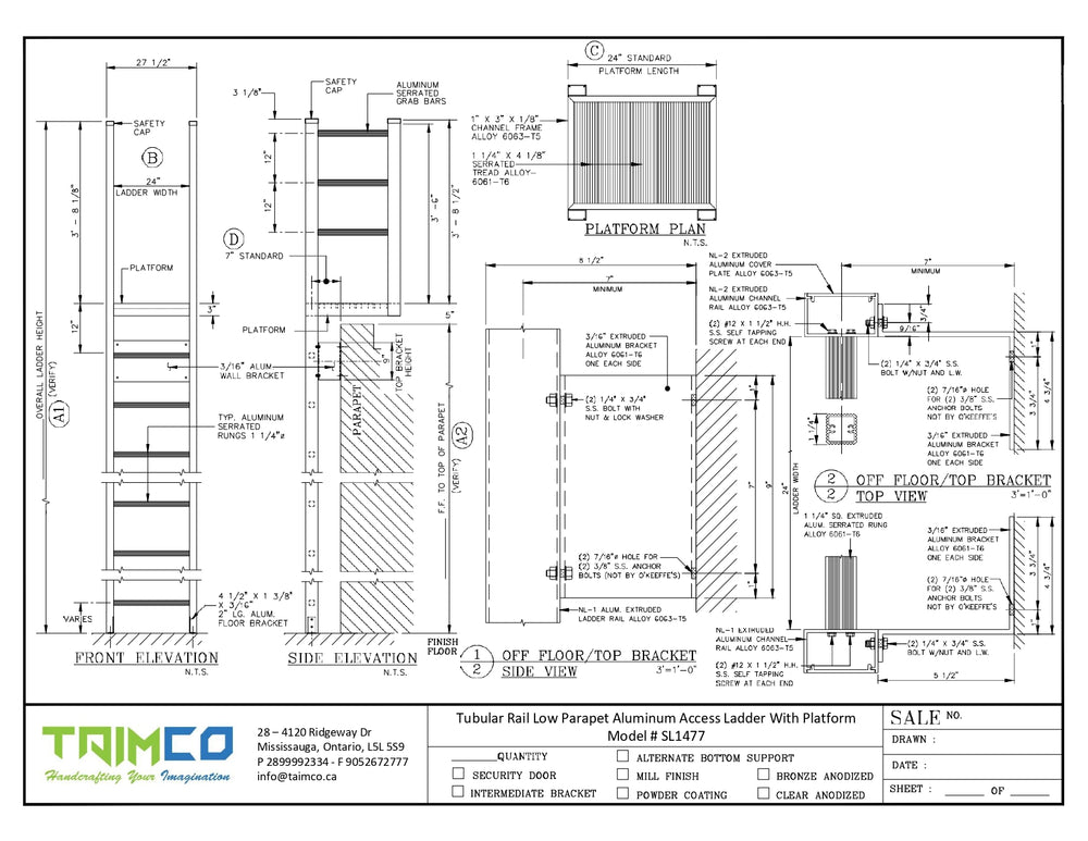 Tubular Rail Low Parapet Aluminum Access Ladder with Platform | Model # SL1477