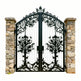 Twinroot Harmony – Wrought Iron Gate with Stylized Tree Panels & Leaf Scroll Arch Model # DWG126