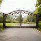 twisted bar wrought iron gate, floral scroll estate gate, arched finial driveway gate, Canadian custom gate, Taimco decorative gate, luxury property gate, ornamental iron gate, heavy-duty artistic gate design