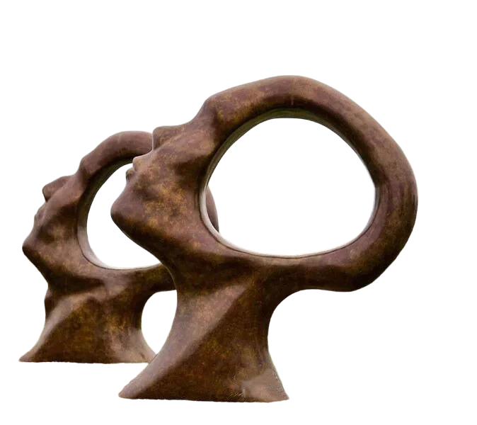Elevate your space with this stunning Abstract Human Profiles Sculpture. Crafted from high-quality, dark-patinated bronze, this piece features two abstract human profiles facing each other, with circular voids in the center of each head. The minimalist design and smooth contours create a modern yet timeless aesthetic, perfect for any contemporary setting.