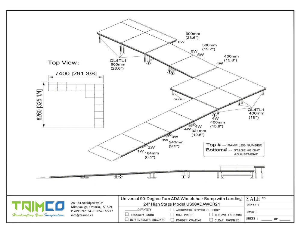 Universal 90-Degree Turn ADA Wheelchair Ramp with Landing 24" High Stage Model US90ADAWCR24