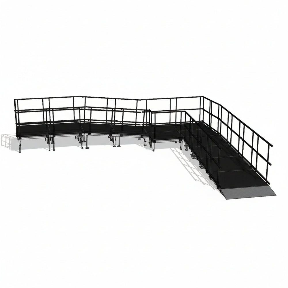 Ensure accessibility and safety with our Universal 90-degree Turn ADA Wheelchair Ramp, designed specifically for 40" high stages. This ramp system is fully compliant with ADA standards, featuring a 12:1 slope and sturdy handrails to provide a secure and comfortable experience for wheelchair users.