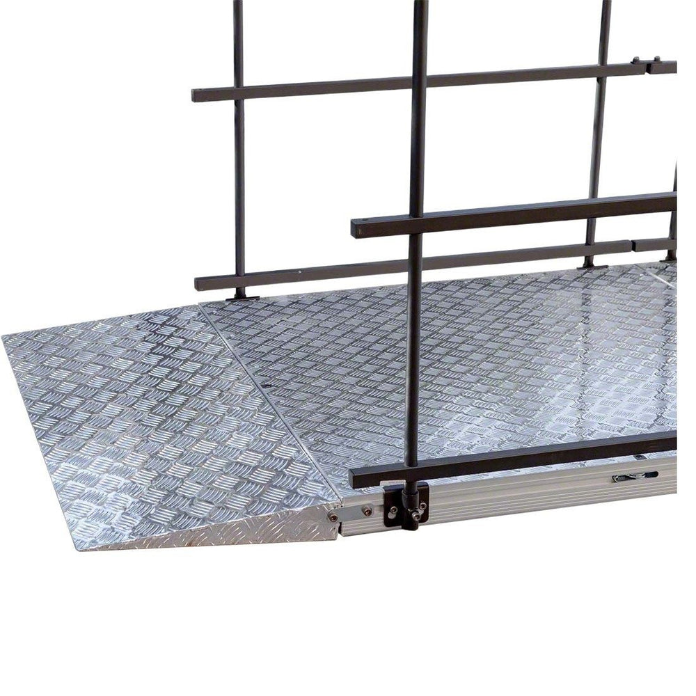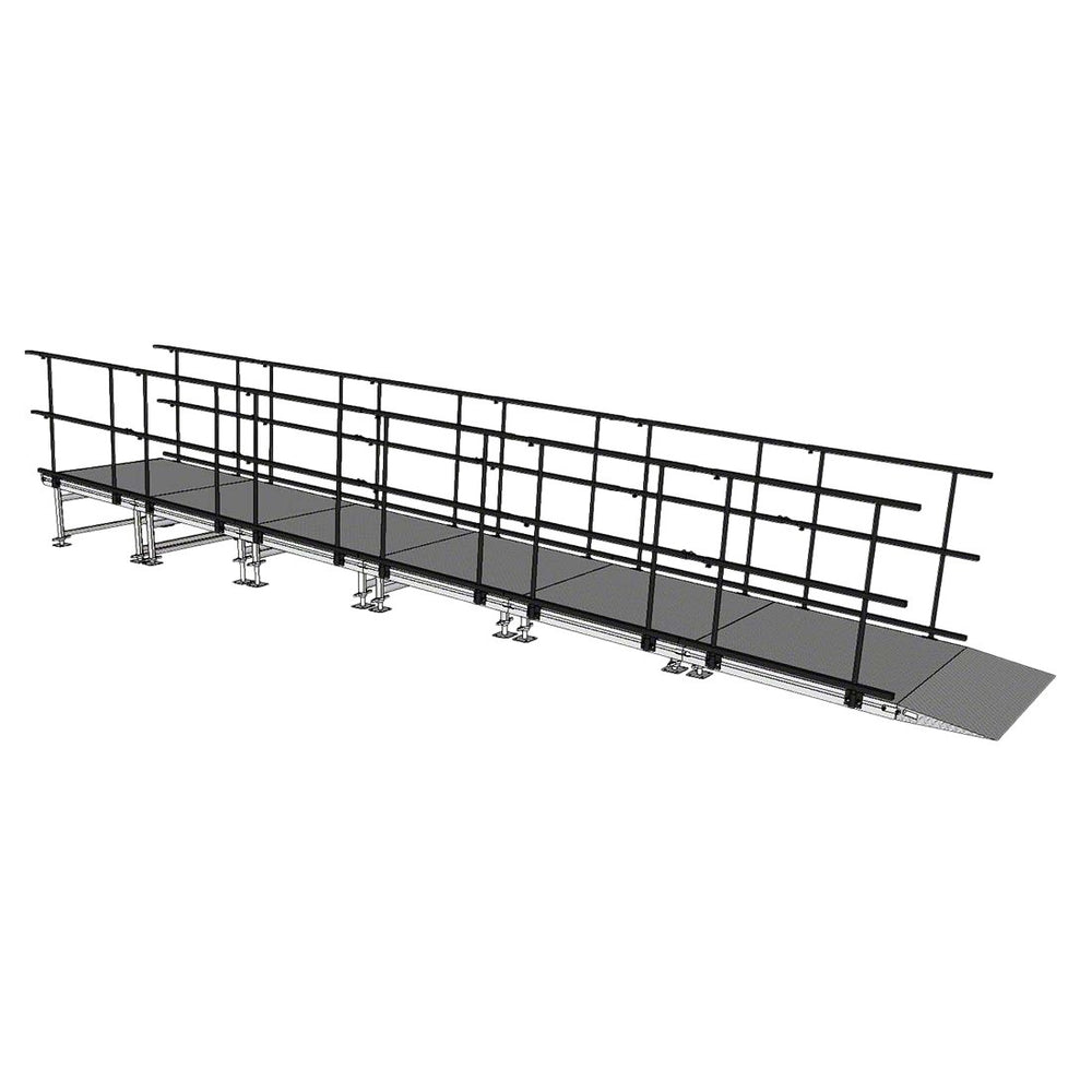 - The height-adjustable legs maintain a consistent 12:1 slope, and the included guardrails enhance safety.