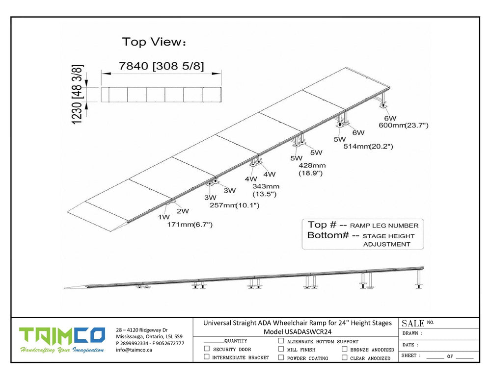 Universal Straight ADA Wheelchair Ramp for 24" Height Stages Model USADASWCR24