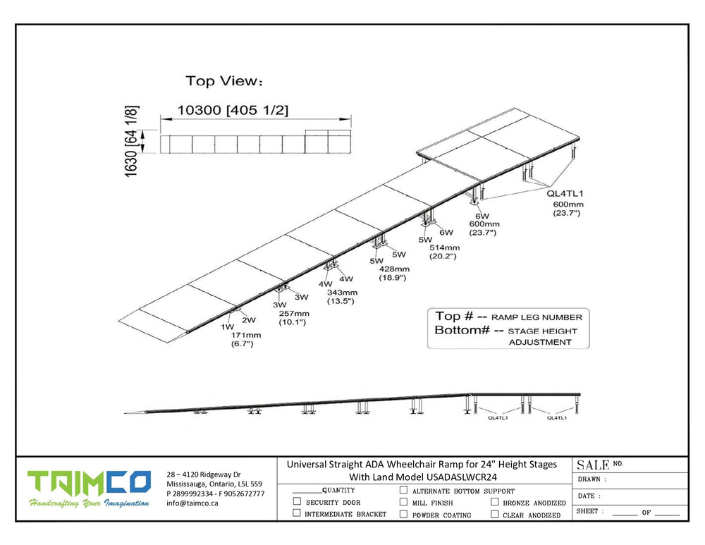 - Introducing the Universal Straight ADA Wheelchair Ramp with Landing for 24” High Stages.