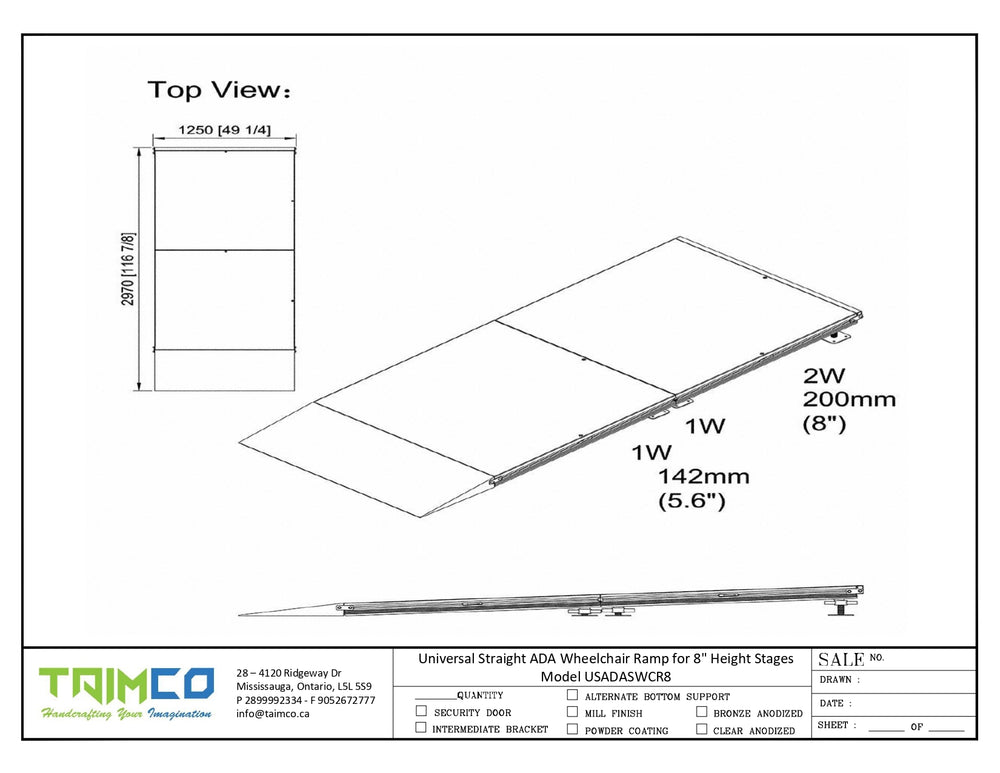 Universal Straight ADA Wheelchair Ramp for 8" Height Stages Model USADASWCR8