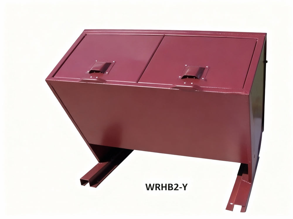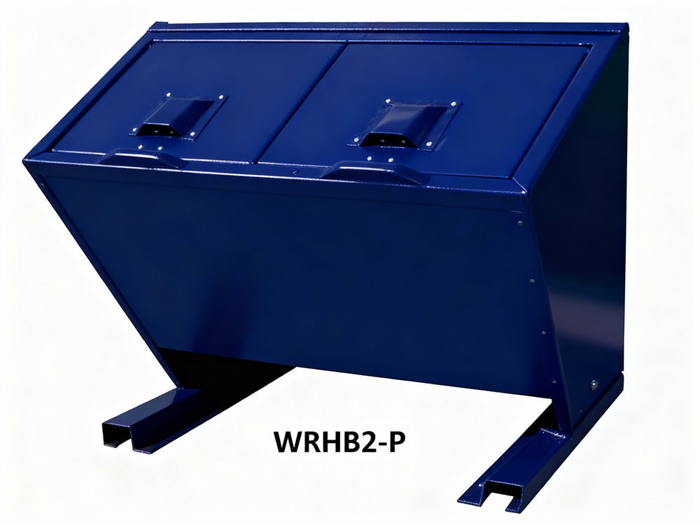 - WRHB2-Y: Double recycling enclosure featuring recycle plates under rear-hinged top doors.
