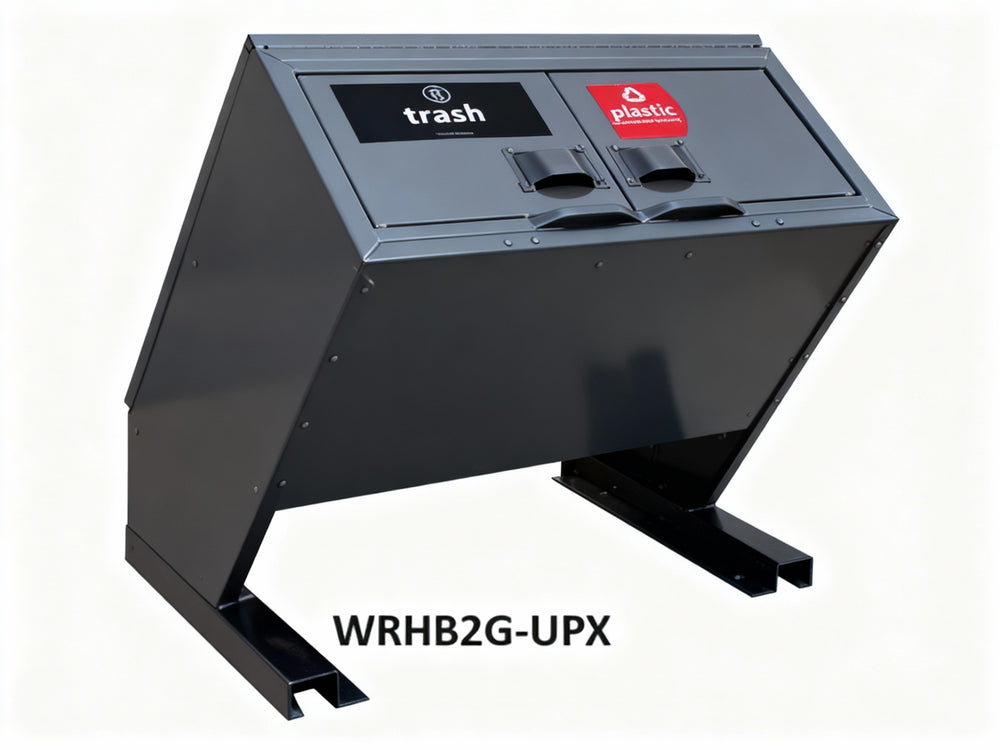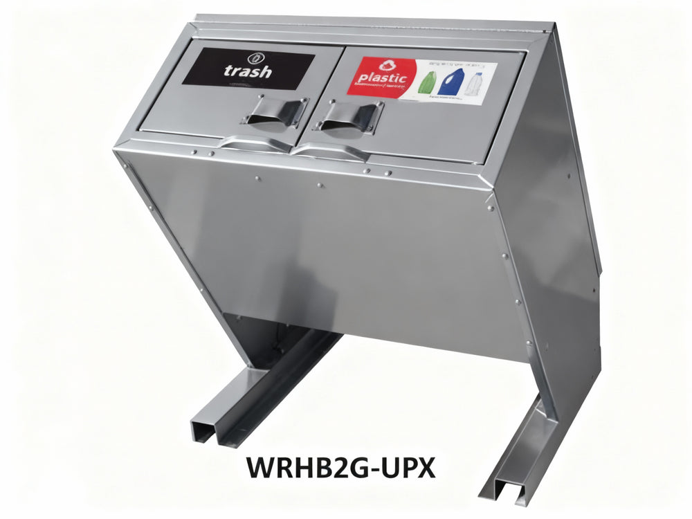 - WRHB2G-UPY: ADA-compliant double recycling enclosure with recycling plates under side-hinged top doors.