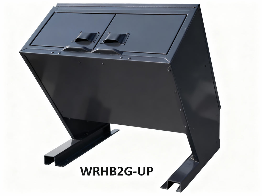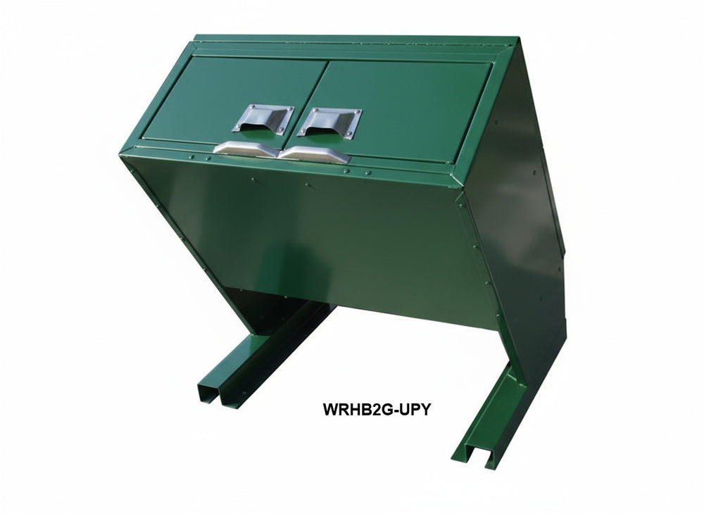 - WRHB2G-Y: Double recycling enclosure featuring recycle plates under rear-hinged top doors.