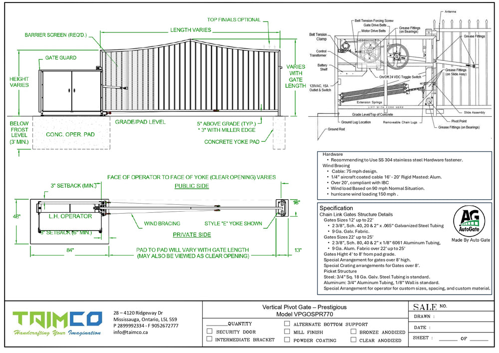 Vertical Pivot Gate - Prestigous Style Model VPGOSPR770