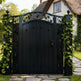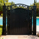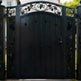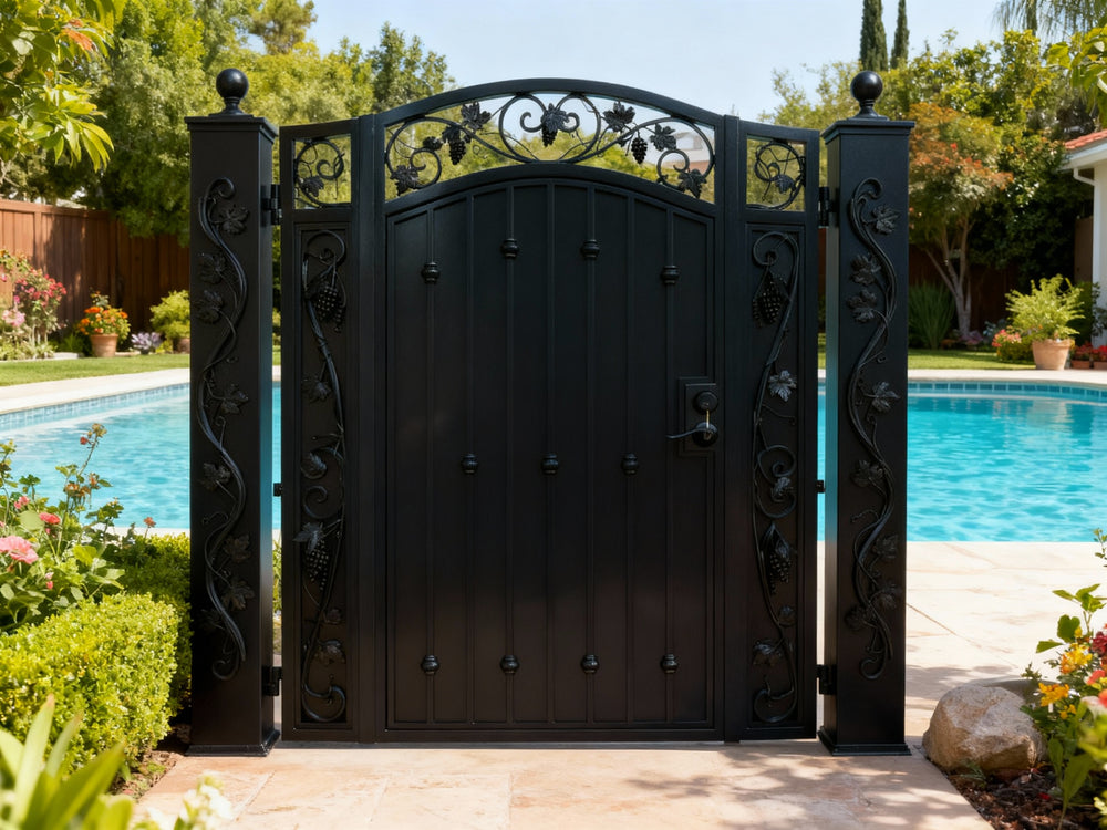 ornate wrought iron man door, grapevine scroll side gate, vineyard garden entry, Canadian custom gate, Taimco decorative passage door, manual operation alley gate