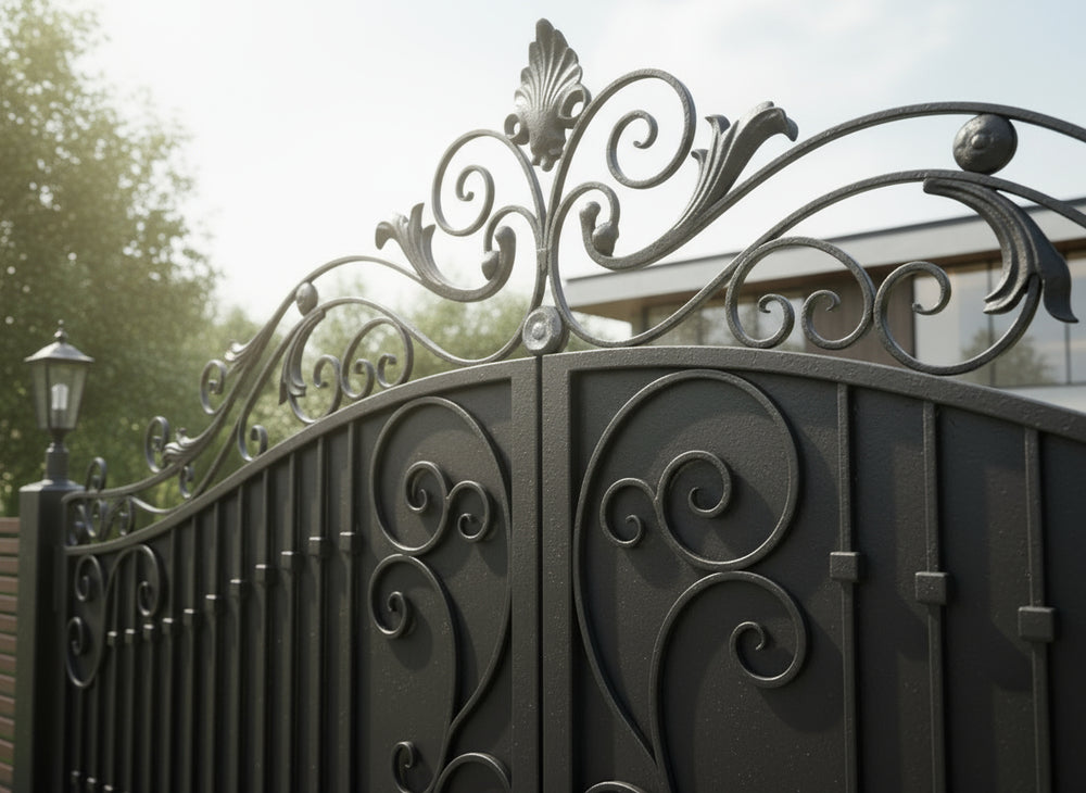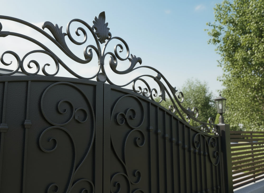 - Arched Finial Crown: Curved top rail with spear-like finials for vertical emphasis