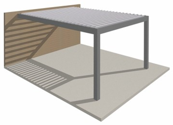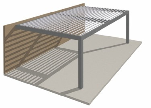 The Wall Mount Louvre Pergola has a sleek and modern design with an Adjustable louvre system.